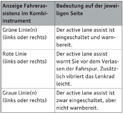 Abb. 163 Kombiinstrument: active lane assist eingeschaltet und warnbereit