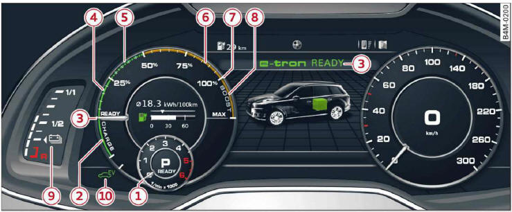 Audi Q7 - Bedienungsanleitung: Übersicht PowermeterGilt für: Fahrzeuge mit Plug-in-Hybrid-Antrieb