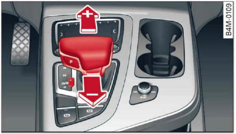 Abb. 108 Mittelkonsole: Manuelles Schalten mit dem Wählhebel