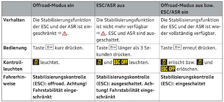 Sie sollten den Offroad-Modus nur einschalten bzw. ESC/ASR nur ausschalten,