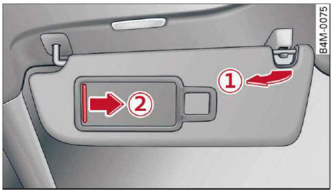 Die vordere der doppelten Sonnenblende kann aus der Halterung herausgezogen und