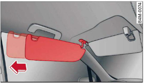 zur Tür geschwenkt werden. In dieser Position ist es auch möglich, die Sonnenblende