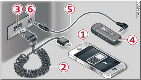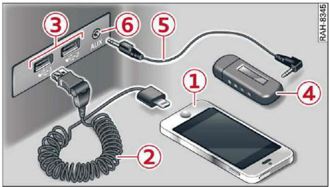 Smartphone, MP3-Ployer) über spezielle USB-Adapter an das Audi music interface oder