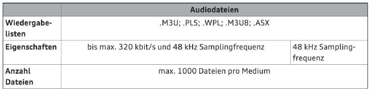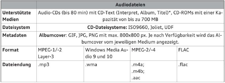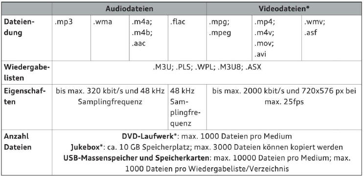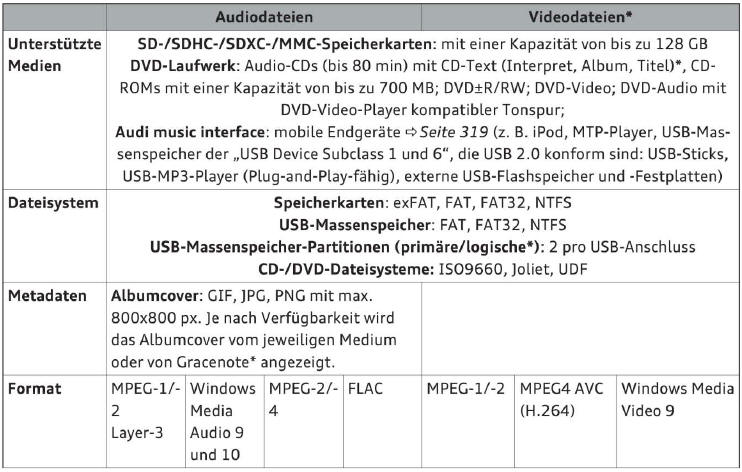 Audi Q7 - Bedienungsanleitung: Unterstützte Medien und Dateiformate