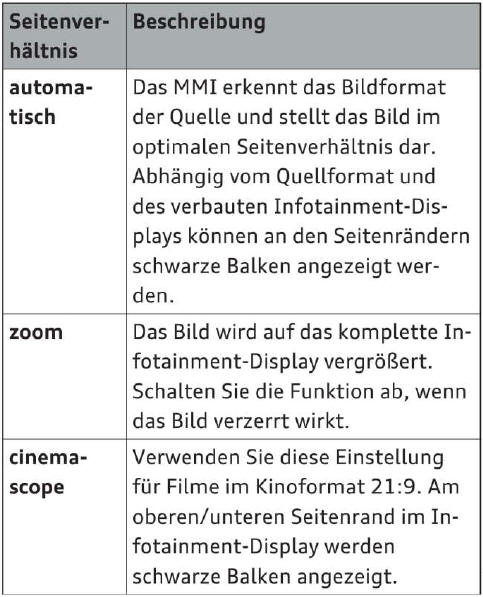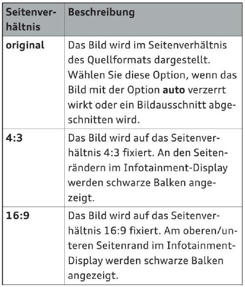 Wir empfehlen Ihnen die Einstellung automatisch für das Seitenverhältnis. Abhängig von der aktiven Datei bzw. Quelle (z. B. Videodatei*, DVD*) können Sie das Seitenverhältnis einstellen.