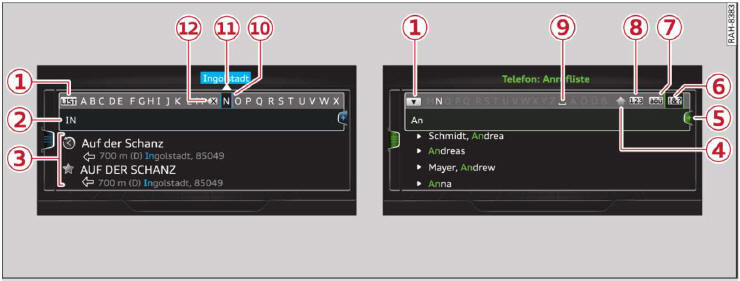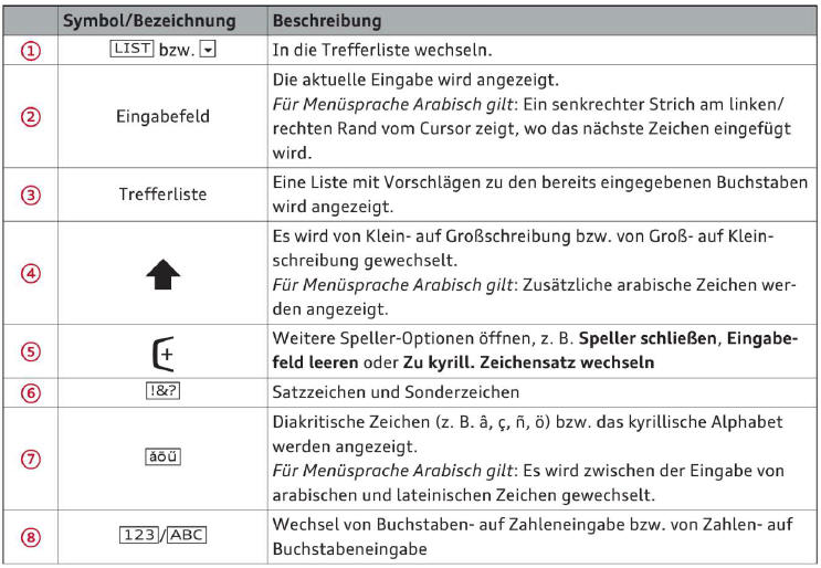 Audi Q7 - Bedienungsanleitung: Buchstaben-/Zahlen-Speller