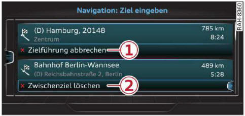 Audi Q7 - Bedienungsanleitung: Ein Zwischenziel einfügen