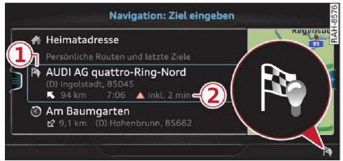 Abb. 250 Beispiel: Anzeige der persönlichen Routen im Menü Ziel eingeben