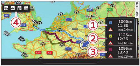 Abb. 252 Prinzipdarstellung: Anzeige der Alternativrouten in der Übersichtskarte