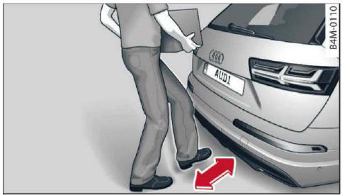 Audi Q7 - Bedienungsanleitung: Gepäckraumklappe mit Fußgeste (Kick-Bewegung) öffnen / schließen