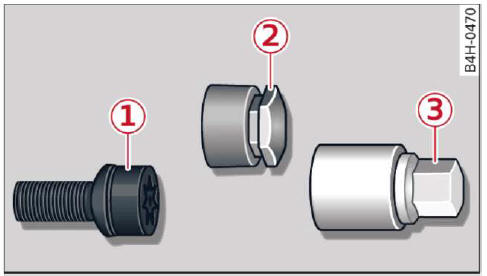 Diebstahlhemmende RadschraubenGilt für: Fahrzeuge mit diebstahlhemmenden Radschrauben