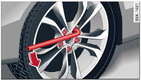 ► Schieben Sie den Radschlüssel (Bordwerkzeug) bis zum Anschlag auf die Radschraube1).