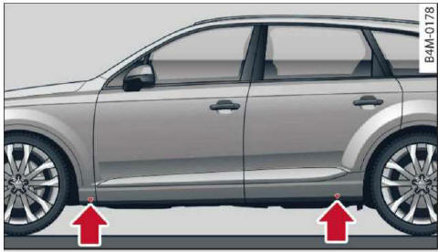 ► Suchen Sie die Markierung am Schweller, die dem zu wechselnden Rad am nächsten liegt Abb. 371. Hinter der Markierung befindet sich am Unterholm der Aufnahmepunkt für den Wagenheber*.