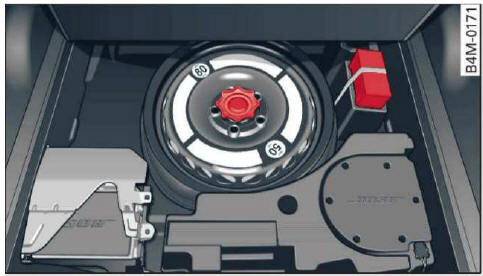 Abb. 375 Gepäckraum: Reservefaltrad mit Kompressor