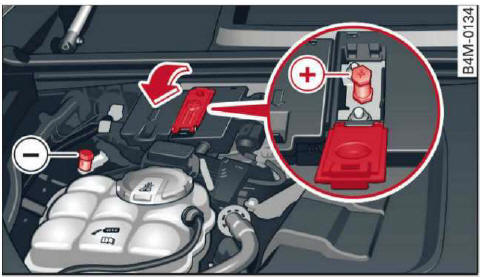 Abb. 376 Motorraum: Anschlüsse für Starthilfekabel und Ladegerät