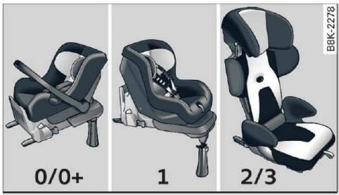 Abb. 316 Kindersitze nach Gewichtsgruppen