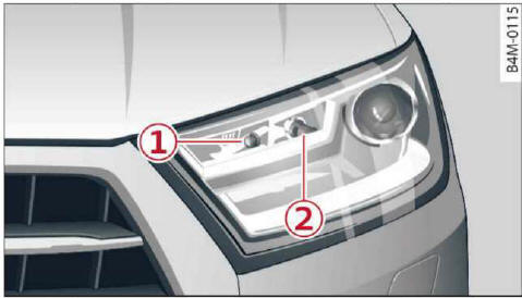 Glühlampen in der FahrzeugfrontGilt für: Fahrzeuge mit Xenon-Scheinwerfern