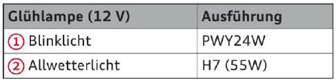 Audi Q7 - Bedienungsanleitung: Glühlampen