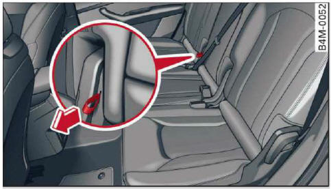 Abb. 81 Zweite Sitzreihe: Entriegelungsschlaufe der mittleren Rückenlehne