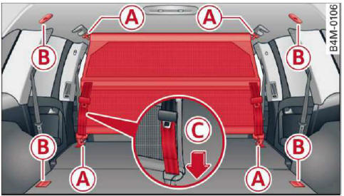 Gilt für: Fahrzeuge mit Verzurrösen und Gepäcknetz
