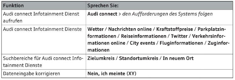 Gilt für: Fahrzeuge mit Sprachdialogsystem und Audi connect (Infotainment)