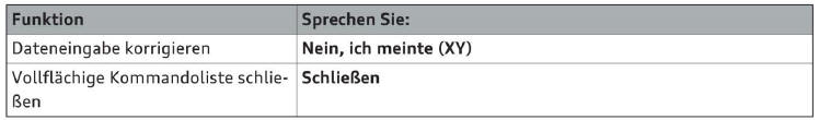 Abhängig von der Fahrzeugausstattung und vom gewählten Menüpunkt, können Sie folgende Kommandos sprechen: