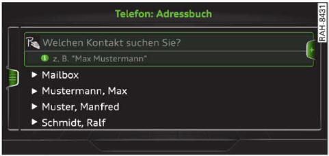 - Wenn das Adressbuch vom Mobiltelefon im MMI geladen ist, werden die Kontakte