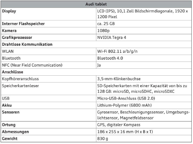 Voraussetzung: Am Audi tablet sind NFC und Bluetooth eingeschalte ...