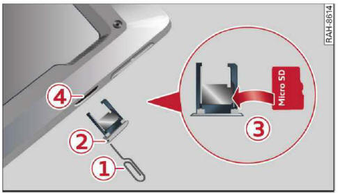 Micro-SD-Karte einlegen/entnehmenGilt für: Fahrzeuge mit Audi tablet