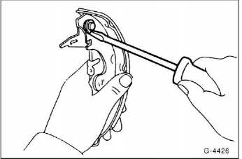 - Seilzug der handbremse mit einem schraubendreher am bremsbacken-handbremshebel aushängen. Dabei darauf achten, daß das seil nicht beschädigt wird.