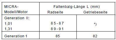 *) Faltenbalgwulst muß in der gelenkwellen-vertiefung liegen.